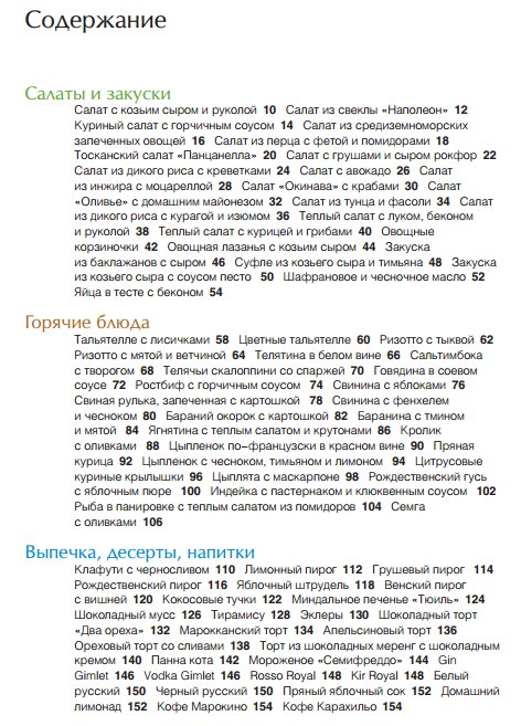 Выше перечислена лишь часть предлагаемых рецептов. Ниже на картинке мы предлагаем ознакомиться с содержанием книги. Полностью скачать кулинарную книгу Юлии Высоцкой можно по ссылке. Книга в формате pdf, что требует специальной программы для чтения.