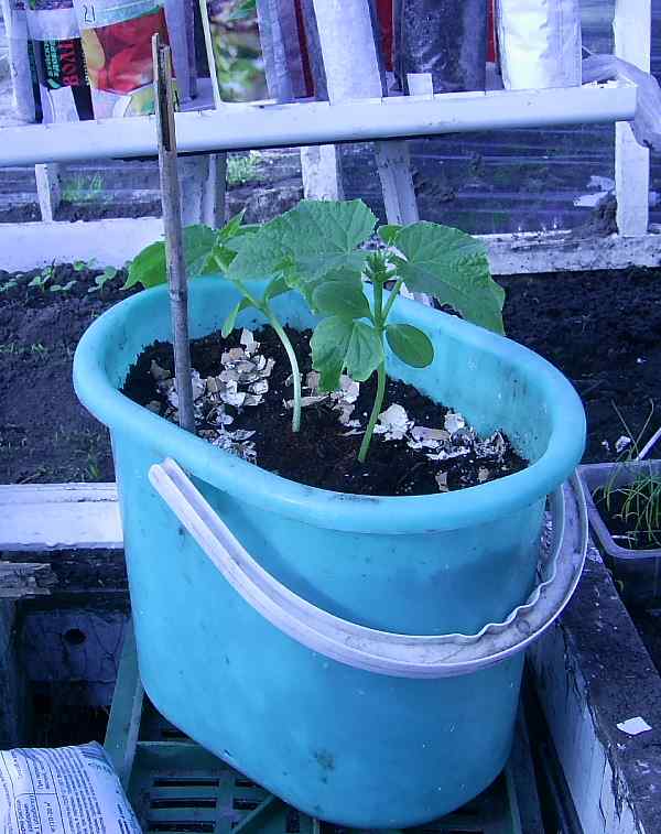 Теперь по агротехнике. В прошлом году была заложена компостная куча, без всяких добавок она прела (ни шатко, ни валко), полностью не перепрела, но в том месте, где она соприкасалась с землей черви поработали достаточно интенсивно. Почва оказалась жирной и рыхлой, она и пошла на наполнение всех емкостей для овощей (не только для огурцов). Наверное, интенсивный рост огурца “Маши” во многом и объясняется такой подготовкой. К этому времени выросла и крапива, которая отлично подходит для “зеленого” удобрения, соответственно, оно было сделано и использовалось при поливе огурцов. Две недели мы не только сами едим салаты из огурцов, но и угощаем ими друзей и знакомых.