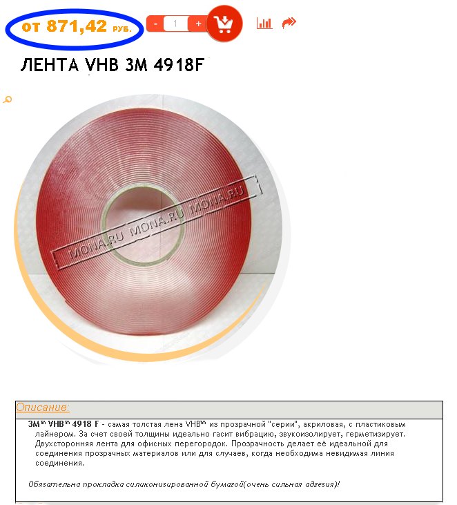 Широко известна продукция компании 3М, которая выпускает скотчи всевозможных типов, клеящие пленки, изоленту, клеи и еще массу других товаров, связанных с химией. Да, товар отличного качества и высокой эффективности, но цена порой зашкаливает до небес. Как видите по картинке, взятой из интернет-магазина производителя, стоимость рулончика двустороннего скотча превышает 800 руб. Компания выпускает разные скотчи, поэтому цена может значительно отличаться, но судить о ее порядке можно уже и по этому предложению.
