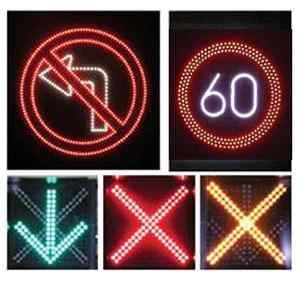 Изготовление знаков со светодиодной индикацией способно заменить несколько знаков сразу (при подключении контроллера), технология современного производства обеспечивает их длительное и бесперебойное функционирование, при минимальных затратах на обслуживание. Светодиодные знаки эффективны в районах, где есть повышенная активность пешеходов, возле школ, и других детских учреждений.