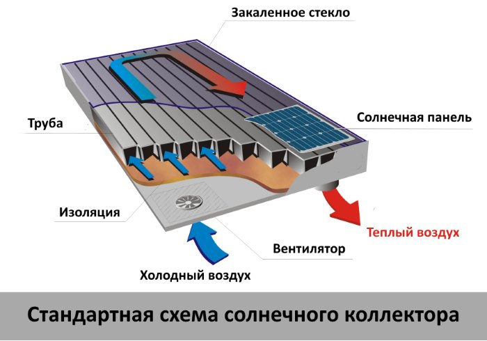 Поиск “google” привел меня на сайт solarsistem.ru, где подробно расписана технология изготовления самодельных солнечных коллекторов. Принцип действия системы прост - воздух из квартиры, посредством обыкновенного компьютерного кулера, подается в специальный лабиринт, который можно сделать из пивных банок, алюминиевых воздуховодов или водосточных труб. Проходя по этому лабиринту воздух нагревается и заходит в квартиру с температурой до 70°C. Конечная температура зависит от многих факторов и может изменяться в широких пределах.