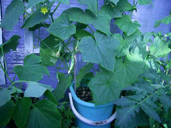 Что стоит отметить. Почва хоть и была хорошей, но три литра для растения явно недостаточно, к сегодняшнему дню перед нами стал выбор, оставить все как есть и смотреть , как огурец погибает или подкармливать минеральными удобрениями (“зеленого просто не хватает”), получая с плодами весь комплект “химии”. Пока решение не принято, но уже в открытом грунте подрастают гибриды “Герман” и “Меренга”, которые совсем скоро дадут достаточно огурцов для нашего стола.