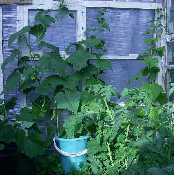 Теперь по агротехнике. В прошлом году была заложена компостная куча, без всяких добавок она прела (ни шатко, ни валко), полностью не перепрела, но в том месте, где она соприкасалась с землей черви поработали достаточно интенсивно. Почва оказалась жирной и рыхлой, она и пошла на наполнение всех емкостей для овощей (не только для огурцов). Наверное, интенсивный рост огурца “Маши” во многом и объясняется такой подготовкой. К этому времени выросла и крапива, которая отлично подходит для “зеленого” удобрения, соответственно, оно было сделано и использовалось при поливе огурцов. Две недели мы не только сами едим салаты из огурцов, но и угощаем ими друзей и знакомых.