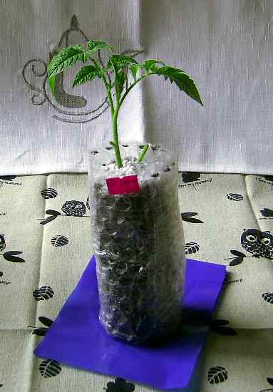 Тем не менее, стало понятно, что рассада перерастает, надо было что-то делать. Великое дело - ютуб, где собраны миллионы роликов на самые разные темы, помог он и нам в очередной раз. Помог тем, что просто и изящно предложил решение нашей проблемы. Стебель переросшей рассады можно обрезать после первых двух настоящих листочков, а верхушку укоренить отдельно. Что и было проделано. При укоренении верхушки был использован раствор янтарной кислоты (1 таблетка на поллитра воды) и обычный грунт для рассады (из магазина). Верхушка Де Барао была высажена в “пеленку”, тоже подарок из ютуба, помогающий высаживать на небольшом подоконнике достаточное количество растений. Развитие замедлилось.