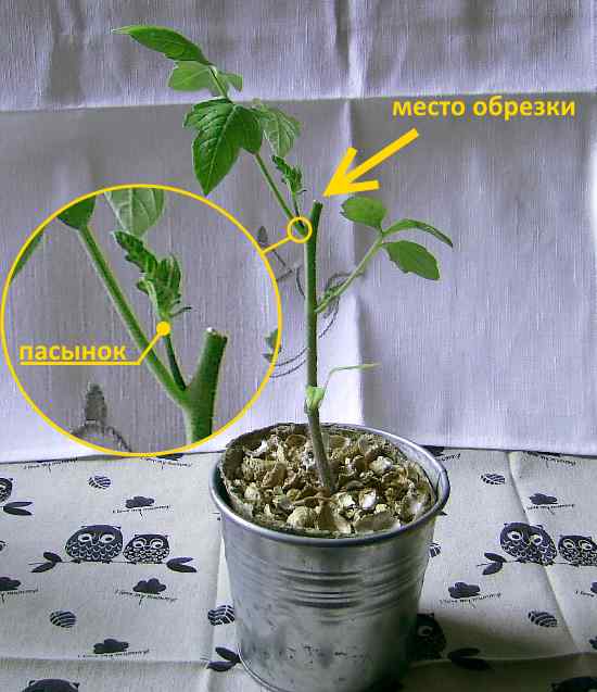 На оставшейся части (с корнями) уже через три дня появился первый пасынок, которому предстоит стать основным стеблем.