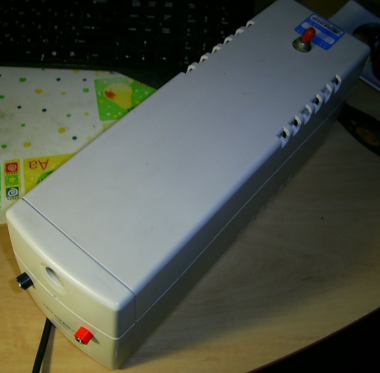 Велико было мое удивление, когда трансформатор выдал на выходе 5,6 В. Подробно расписываать, как я выбрасывал электронную начинку ИБП и искал нужные провода от трансформатора, наверное, смысла нет - информации предостаточно в интернете.