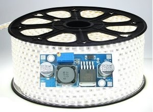 Следующим шагом были замеры при подключенной светодиодной ленте. Напряжение не менялось, было стабильным - 12 В, сила тока - 1,07 А. Все работало штатно, нагрев был в пределах допустимого. Лента использовалась : производства "Tanbaby", 5 метров на светодиодах smd 5730. То есть, для работы 5 м не самых мощных светодиодных лент этого модуля вполне хватает, стоит он недорого, а припаять его не сложно.