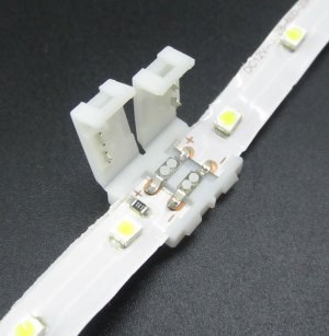 Чтобы избежать возможных проблем были придуманы специальные коннекторы - разъемы для соединения отрезков светодиодной ленты.