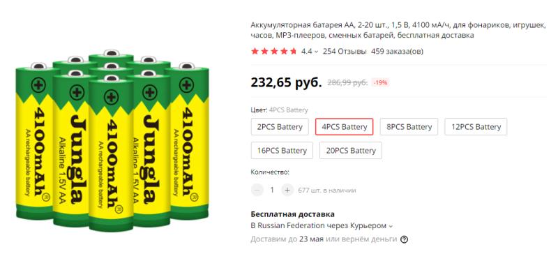 Что получилось по цене? Комплект из 4 Li-Ion аккумуляторов на Алиэкспресс стоит около 600 руб. Отметим, что производитель гарантирует возможность 1200 (но, не верится!) циклов перезарядки аккумулятора. Быстрая и простая зарядка, доступная цена вызывает естественный интерес у покупателей, тем более, что эти аккумуляторы лишены недостатков Ni-Mh.