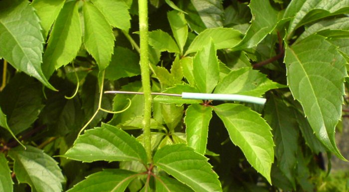 Медная проволока в стебле томата