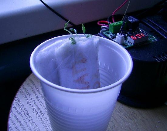 Вот, и свои улитки начали прорастать. Это сорт томатов "Алпатьева 905А"