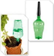 Ярким примером такой системы служит разработка ЗПИ “Альтернатива” под названием “Лейка с системой автополива”. Комплектуется набор из обыкновенной пластиковой бутылки, на головку которой накручивается специальный наконечник с отверстием. В почву вставляется конусообразный распылитель, в котором потом размещается емкость с водой (наконечником вниз).