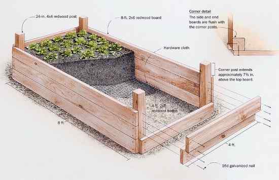 Не зря их еще называют высокие умные грядки. Судите сами, благодаря увеличенной поверхности (не только сверху, но и с боков) тепла и света грядка получает больше, земля прогрета раньше и это позволяет высаживать семена (рассаду) овощей на 2-3 недели раньше привычных сроков. Обустройство высоких грядок может быть самым разным, их можно делать из кирпича и бетона, годится и шифер, но лучше всего они получаются из досок. Одни огородники делают их капитальными на несколько десятилетий, другие - на два-три сезона, в любом случае дело зависит от фантазии владельца участка и его финансовых возможностей.