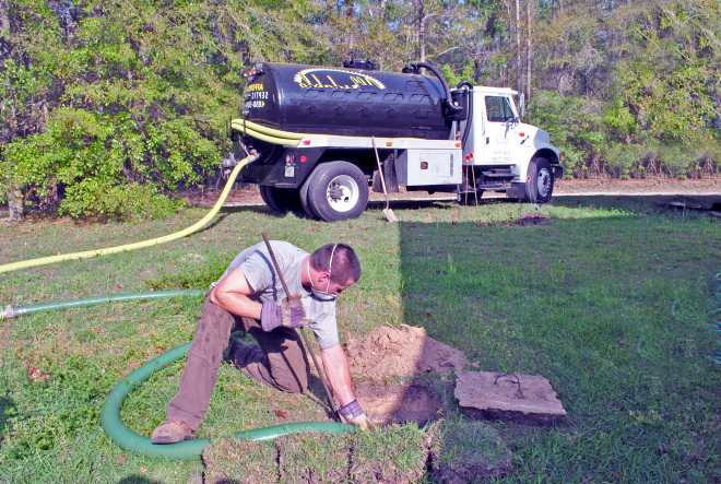 Очищают септики вакуумными машинами (ассенизаторская машина). Устройство такой машины достаточно просто, на шасси грузовика установлена цистерна и вакуумный насос. Забор тяжелого осадка (или ила) происходит всасыванием, путем создания разряженного давления в цистерне. При устройстве септика на приусадебном участке следует помнить о возможности беспрепятственного подъезда ассенизаторской машины к люку септика. Также следует помнить о том, что большая глубина закопанного септика и большая длина шланга для откачки отходов требуют наличия у ассенизаторской машины более мощного насосного оборудования. Иногда может понадобиться размывка ила водой. Большинство компаний оказывающих услуги на этом рынке предлагают откачку нечистот круглогодично, они имеют качественное насосное оборудование, работающее, на масле и позволят откачать стоки с глубины 25 метров. После откачки отходов рекомендуется произвести дезинфекцию септиков, используя специальные растворы на основе биологической составляющей (микроорганизмы и бактерии).