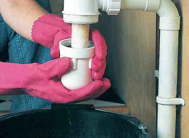 Существуют отдельные случаи, когда засор получается из-за жировых отложений в сифоне. Жир накапливается, проход для воды сужается, сток ухудшается. Лучше всего в этой ситуации снять сифон, разобрать его, вычистить и собрать, сохраняя обратный порядок. Так как абсолютное большинство сифонов делается из пластмассы, по промывать трубы канализации можно горячим раствором стирального порошка (стакан порошка на 5 л воды), что не приводит к их повреждению. Делать эту процедуру стоит после ликвидации засора, для профилактики. Также, засор в сифоне легко предупреждается, если после мытья грязной посуды в течение 20 сек пустить струйку горячей воды. Гофрированную трубу можно снять и промыть, но лучше купить новую, так как стоит она совсем немного, а прослужит значительно дольше.